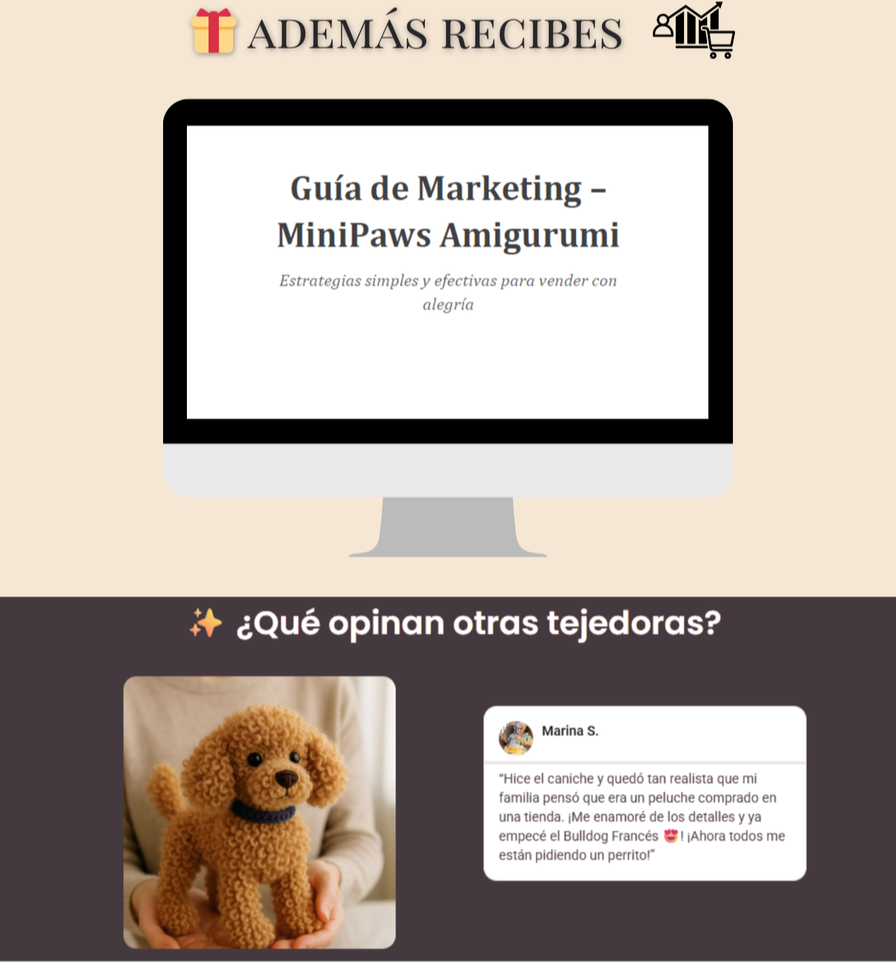 Es un paso a paso con estrategias simples y prácticas para que aprendas a vender tus amigurumis en redes sociales y generar ingresos.